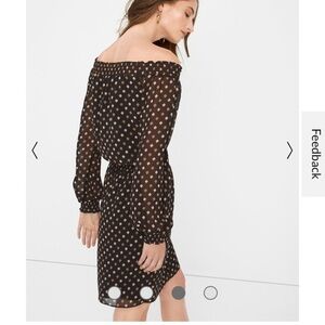 White House Black Market Off The Shoulder Printed Dress Chiffon Black Tan Sz M