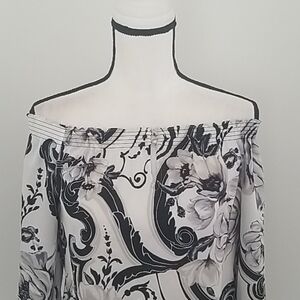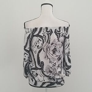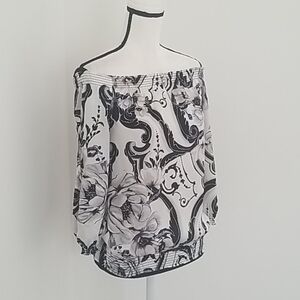 White House Black Market Off the shoulders Blouse, elasticized waistband, long sleeve.