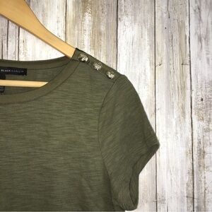 White House Black Market Olive Green Button Shoulder Tee