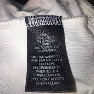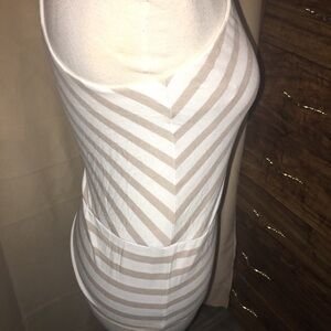 White House Black Market One Shoulder White and Tan Top,Stripes going diagonal and then straight across from the waist down.