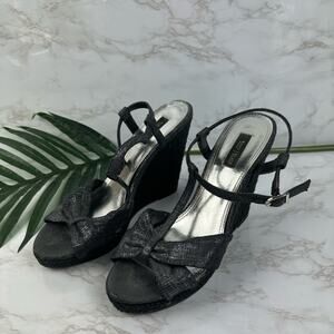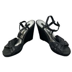 White House Black Market Open Toe Black Formal Wedges Women’s Size 10