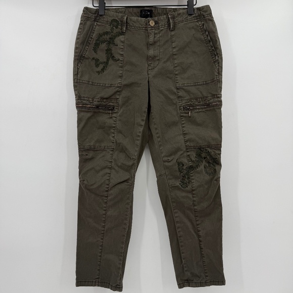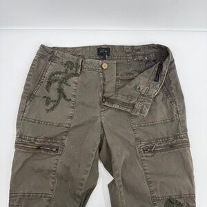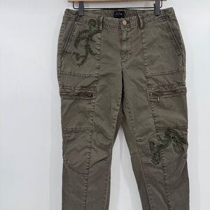 White House Black Market Pants Women 8 Green Slim Crop Utility Y2K Embroidered