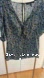 Stylish blouse with a deep V-neck. Features ruched sleeves and a unique pattern. Perfect for any occasion.