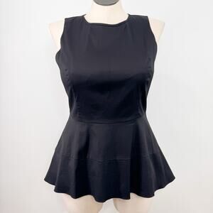 White House Black Market Peplum Sleeveless Top Black Neutral Business Size 12