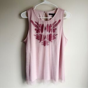White House Black Market Pink Embroidered Mesh Career Tank Top