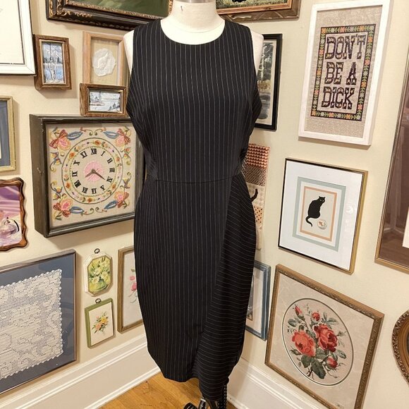 White House Black Market Pinstripe Sleeveless Midi Stretch Sheath Dress Size 14