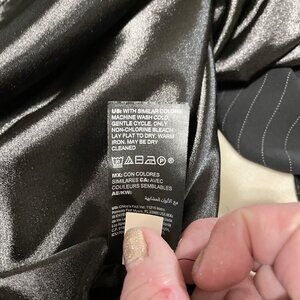 This White House Black Market sheath dress in a size 14 exudes a sophisticated charm. Featuring a classic pinstripe pattern and a sleeveless design, it seamlessly blends elegance with modern style. Crafted from a high-quality polyester blend, it offers both comfort and a flattering fit, making it an excellent choice for professional or formal settings.