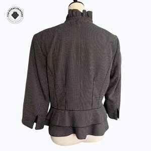 White House Black Market Polka Dot Peplum Blazer Ruffle Collar Size 12
