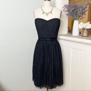 WHBM White House Black Market Polka Dot Mesh Tulle Strapless Fit and Flare Fancy Holiday Cocktail Party Date Night Out Formal Event Spring Summer Strapless Gala Party Wedding Guest Black Tie Event New Years Eve Christmas Party Holiday Special Occasion