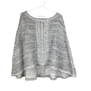 White House Black Market Poncho Sweater Gray Metallic Wool Blend Size M Knit