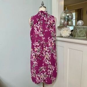 White House Black Market Purple Floral Tie Neck Chiffon Choker Shift Dress 10