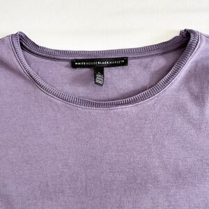 Elevate your everyday wardrobe with this White House Black Market short sleeve knit top in a soft lavender purple shade. Designed with a flattering scoop neckline and smooth stretch fabric, it’s perfect for layering or wearing on its own. A versatile staple that works for casual, office, or minimalist looks.
