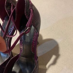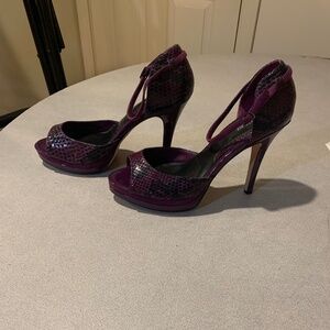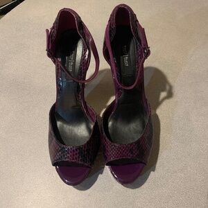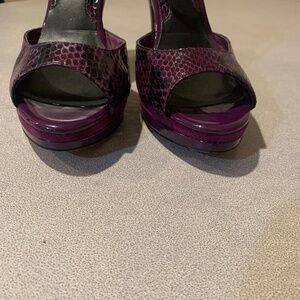 White House Black Market Purple/Black Snakeprint/Suede/Patent Platform Sandals sz 8.5 M
