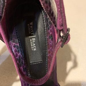 White House Black Market Purple/Black Snakeprint/Suede/Patent Platform Sandals M
