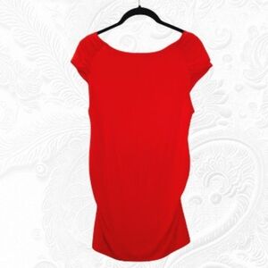 White House Black Market Red Drape Cap Sleeve Gathered Sides Top