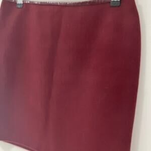 White House Black Market Red Mini Skirt Size 2. Excellent condition, like new. Dark maroon red. The material feels similar to wool - thick, warm, structured material. Zip closure. Fully lined. Great workwear!