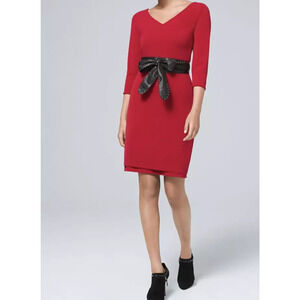 White House Black Market Red Rose Reversible Dress Sz XS Knee Length 3/4 Sleeve