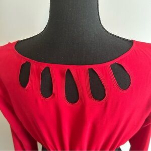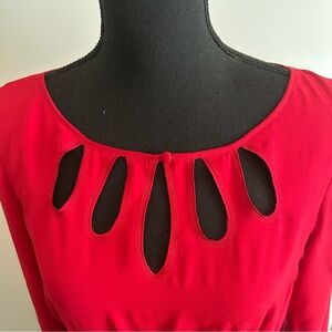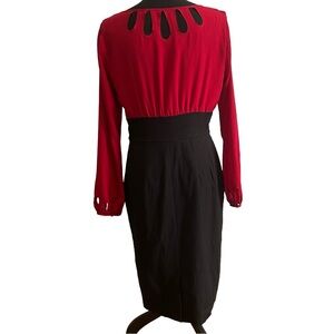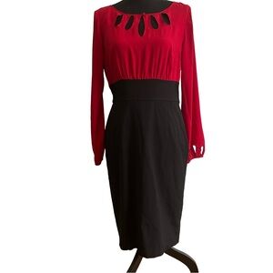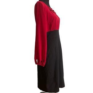 This sophisticated dress by White House Black Market features a striking red and black color-block design, perfect for work or cocktail occasions. The ruched detailing at the waist and bishop sleeves add a touch of elegance, while the crew neck and long sleeves provide a polished look. Crafted for a flattering fit, this dress seamlessly combines style and comfort.Size 10