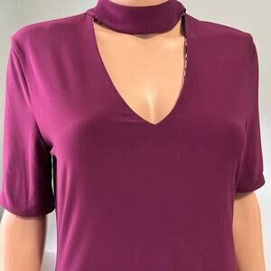 This White House Black Market dress is reversible, giving you two dresses in one. One side is a dark floral print, the other is a plain burgundy. Short sleeve, halter collar and keyhole back. Vee neckline. There is no fabric tag. Preppy, career, work, date night, party, special occasion, concert, theater, dinner.