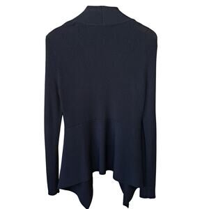 White House Black Market Ribbed Cardigan Sweater Black OpenFront High Low Fitted
