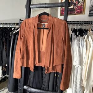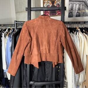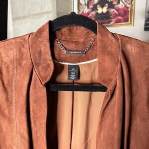 White House Black Market Rich Mahogany Suede Cascade Lapel Jacket 100% Leather