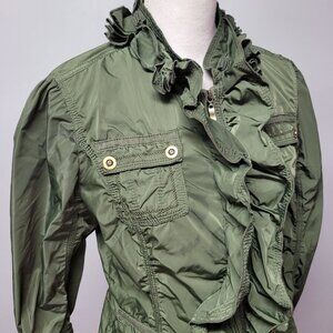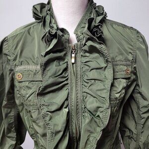 White House Black Market Ruffle Jacket Zip Pocket Green Womens Small Lightweight