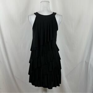 White House Black Market Ruffled Layered Party Event Black Dress NWOT