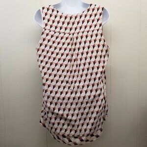 White House Black Market S Silk Shirt Top Lined Hi Low Shell Geometric V Neck