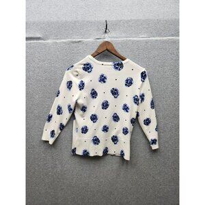 White House Black Market S Womens Floral & Polka Dot Button-Up Cardigan - Blue &
