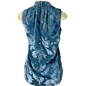 White House Black Market 0/S Teal Flocked Floral Velvet V-Choker Neck Sleeveless Top