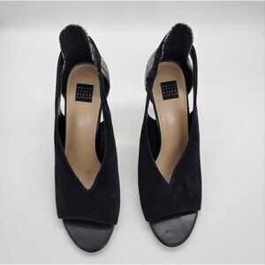 WHBM Grace Black Suede Snakeskin Peep Toe Heels Shoes