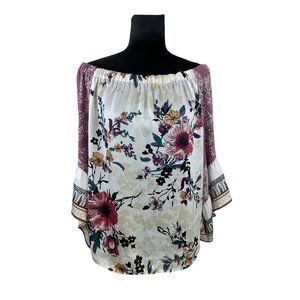 White House Black Market Satin Floral Off The Shoulder Blouse Size L