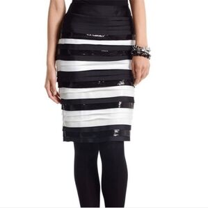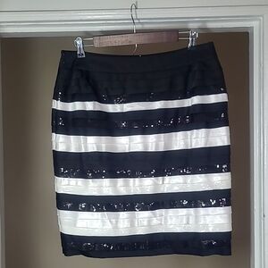 White House Black Market Satin & Sequin Layered Striped Cocktail Skirt | Size 8