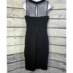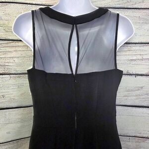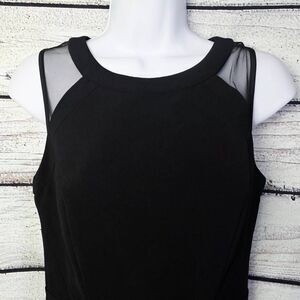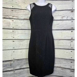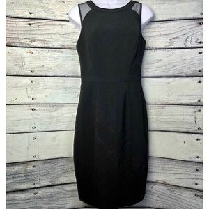 White House Black Market women’s sleeveless black dress, size 2. Elegant sheath style with sheer mesh neckline and back detail. Tailored fit with hidden back zipper. Perfect for cocktail or evening wear.