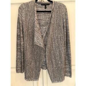 White House Black Market Shimmer Open Front Long Sweater Gray With Sequins Small