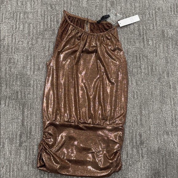 Elegant sleeveless top with a shimmering finish. Perfect for evening wear.