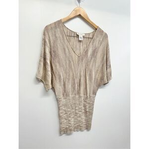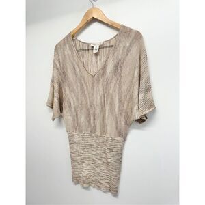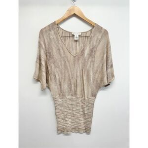 White House Black Market Shirt Size Medium Cream V Neck Fitted Banded Bottom