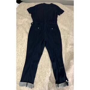 Effortlessly chic and perfectly tailored, this WHBM denim jumpsuit is your one-and-done outfit for any season. Features a structured fit with short sleeves, button front detail, waist belt for a flattering silhouette, and cuffed hems for a polished yet casual vibe.