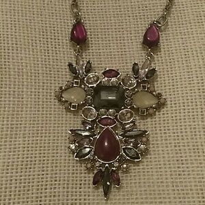 White House Black Market Silver Chain Long Necklace With Pink & Gray Rhinestones