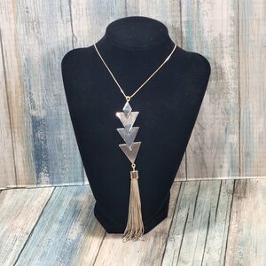 White House Black Market Silver and Gold Geometric with Tassel Necklace.