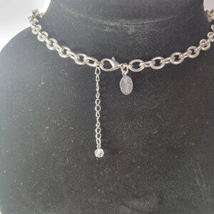 White House Black Market Silver-Tone Rhinestone Accented Chain Necklace