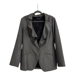 White House Black Market Single Button Gray Ruffle Collar Blazer Jacket Large
