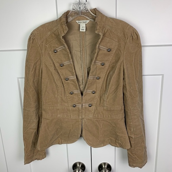White House Black Market Size 4 Tan Corduroy Military Jacket Silver Button Stret
