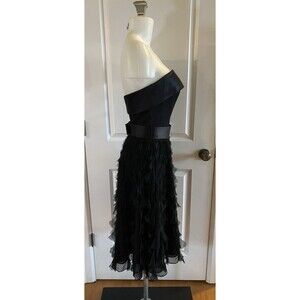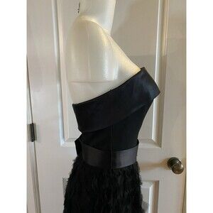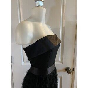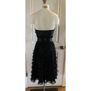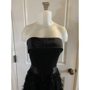 White House Black Market Size 6 Strapless Chiffon Ruffled Bottom Black Dress