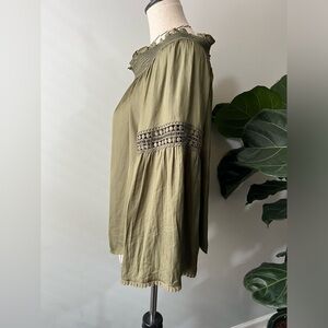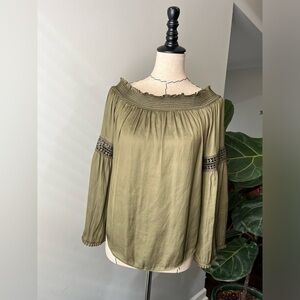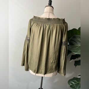 White House Black Market WHBM boho blouse with butterfly style sleeves in a beautiful Olive!