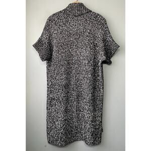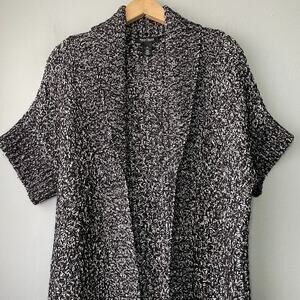 White House Black Market short sleeve open front chunky marled black and white knit long duster cardigan sweater in Excellent pre-owned condition!