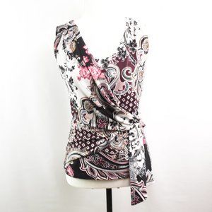 Crafted from our customer-fave matte jersey, this knit top features a regal display of swirling paisley, complemented by a universally flattering wrap design.