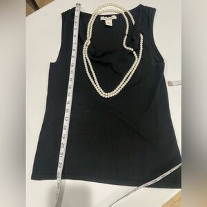 Elegant limited edition blouse for that special occasion. If you combine it with shorts, jeans, pants, and a skirt, you will create incredible outfits. White House Black Market elegant sleeveless blouse with a hanging neck and a woven pearl necklace. Size S-M.