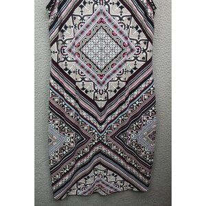 This is a White House Black Market Sleeveless Reversible Midi Dress that is a size Large. It is New w/Tags and retails for $98. It is geometric on one side and solid black on the other. It is 95% Polyester and 5% Spandex. Laying flat, it measures: Armpit to armpit-21" and the Length is 42".