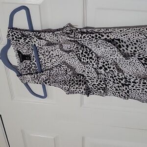 White House Black Market Sleeveless Ruffled Hidden Side Zip Animal Print Top XXS